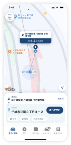 新千歳空港は、スマートフォンアプリでタクシーを呼べる「配車アプリのりば」を新設。タクシー配車アプリの「GO」と「Uber」、「DiDi」を利用する実証実験を1月15日から開始する。