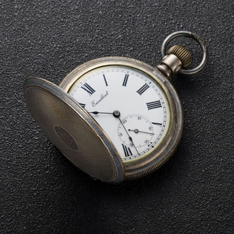 上記のキングセイコー同様に、懐中時計に施された彫刻にヒントを得た型打文様のダイヤルで、静謐なイメージのホワイトダイヤルに仕上げた。