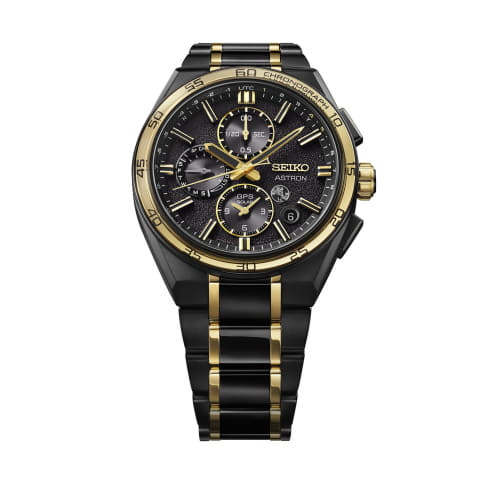 セイコー アストロンには、ブラックのケース・ブレスレットにゴールドを組み合わせた、荘厳なイメージの限定モデル「SBXC186」が加わる。クオーツ式の腕時計で、価格は374,000円、世界限定1,450本(うち国内600本)。