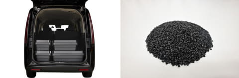 既存の「頑丈収納ボックス ダークグレー」は再生ポリプロピレンを75%以上使用していたが、新製品はバンパー再生材を使用して92~94%にまで使用率を拡大。バンパー再生材が持つ柔軟性と高い耐衝撃性を生かし、商品の性能を落とさずに使用率を拡大した。