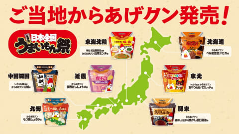 北海道、東北、関東、東海・北陸、近畿、中国・四国、九州・沖縄の7地域ごとに、ご当地の食材やソウルフードとコラボした“ご当地からあげクン”のほか、地元の名店による監修やご当地食材を使用した商品を発売する。