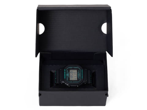 初代G-SHOCK DW-5000のDNAを引き継いだ「DW-5600」の基本モデル「DW-5600UE-1JF」をベースとしたコラボモデル。DW-5600UE-1JFは、オクタゴン(八角形)のベゼル、スクエア型ディスプレイのデザインが特徴としている。