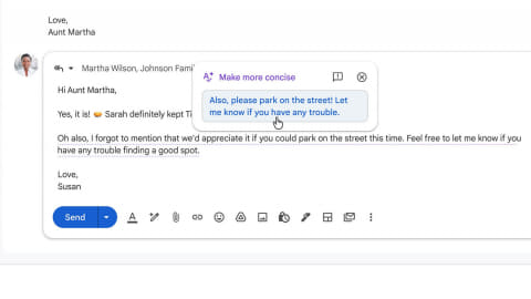 さらに8日から、「Help Me Write」でメールの推敲や新規作成が可能になる。会話の文脈から、ユーザーの書き方に合ったワンクリック返信を提案する新機能「提案返信」(Smart Repliesのアップデート版)も追加される。