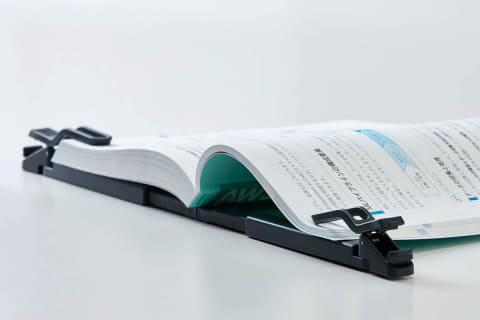 左右のクリップが独立して動くため、参考書の始めや終わりなど、左右のページ数に大きな差がある場合でも、それぞれの厚みに合わせてしっかり固定できる。
