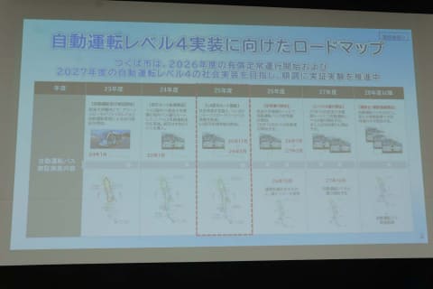 五十嵐市長は、1年前に比べても自動運転でスムーズに走行できており、同路線における自動運転のデータの蓄積が進んでいると説明。こうしたデータを踏まえて国に対してレベル4自動運転の認可申請を準備していく予定。2026年度には、同路線での定常運行を開始し、10月に有料化。2027年度には、レベル4自動運転を開始したい考えだ。