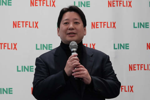 Netflixビジネスディベロップメント シニアディレクターの下井昌人氏は、スマホの普及率が24年に90.5%となったことに触れ、「この数字はテレビとほぼ同じ。いつでもそばにあるスマートフォンで、LINEは生活の一部になっている。日常に根付いたプラットフォームで、Netflixの作品が語られる場所として、LINEはもっとも自然な場所」と提携の意義を強調する。