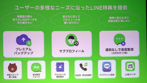 LYPプレミアムは、LINE、ヤフー、PayPayの利用者向けの優待プログラム。月額508円で様々な優待を用意し、100GBまでトーク履歴をバックアップできる「プレミアムバックアップ」、通知をせずに送信取消できる「通知なしで送信取消」などの「LINE」特典のほか、「Yahoo!ショッピング」の利用で「PayPayポイント(期間限定)」が+2%貯まる「PayPayクーポン」などを展開している。