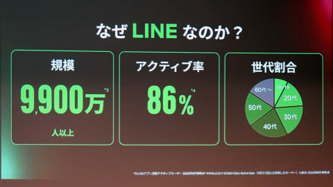 LINEは9,900万人、日本の人口の8割が使うサービスになっている。今後の強化ポイントとしては、「LINEタブリニューアル」「LYPプレミアム」「AIエージェント」「LINEミニアプリ」の4つに注力しているが、そのひとつLYPプレミアムの新たな施策となる。