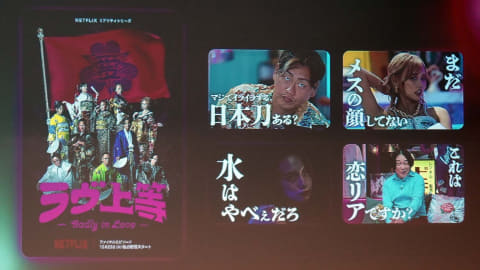そのうえで、エンタメ視聴のきっかけは「口コミ」が4割で、評判が作品の視聴や感想のシェアに繋がるため、9,900万人が使いアクティブ率が高いLINEとの連携は、「話す場所」と「見る体験」が繋がると価値があると説明。年末に大きな話題となった、“ヤンキー”による恋愛リアリティショー「ラブ上等」など、会話からヒットが生まれる事例を紹介した。