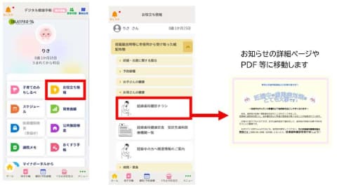 マイナンバーカード連携については、マイナポータル経由でPublic Medical Hub(PMH)等から健診や予防接種等の記録を取得することで、健診や予防接種のスケジュール管理が簡単になる。PMHとは、デジタル庁が開発した情報連携基盤で、自治体や医療機関等がPMH接続を行なうことで、母子保健情報を住民、医療機関、自治体の間で迅速に共有・活用できる。