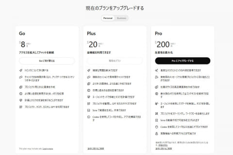 ChatGPT Goの月額料金は1,500円。Plusの3,000円、Proの30,000円とあわせて3つの料金プランで展開し、GoはPlusの半額となる。なお、米国での価格はGOが8ドル、Plusが20ドル、Proが200ドルで、米国のほうがGoが割安な設定となっている。