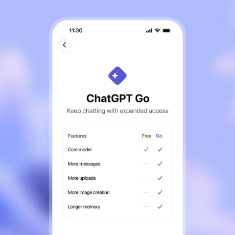 ChatGPT無料版では最新モデルへのアクセスが制限されているが、ChatGPT Goは、最新モデルの「GPT‑5.2 Instant」が利用可能になる。また、より多くのメッセージ送信、ファイルアップロード、画像生成などに対応する。