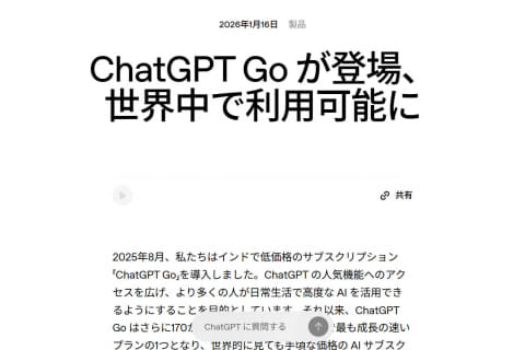 ChatGPT、「広告」開始へ 無料版と1500円の新プラン「ChatGPT Go」