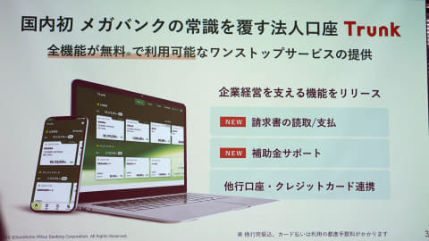 三井住友の法人口座「Trunk」、カード払いや補助金サポートなど新機能