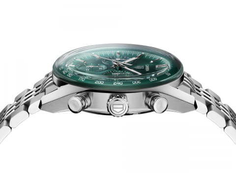 ダイヤルがティールグリーンのモデルは、タグ・ホイヤーの新たなシグネチャーカラーと位置付ける、深みのある色合いが特徴。