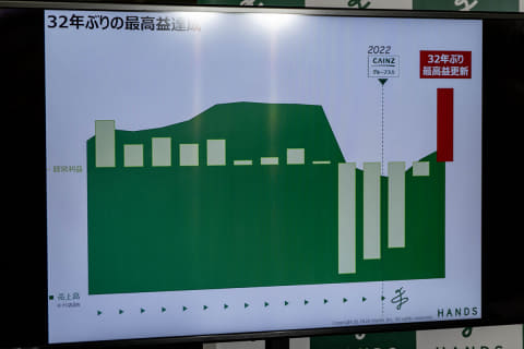 収益面では、32年ぶりに最高益を更新。50年を節目に新生ハンズをさらに飛躍させていく土台は整ったと説明した。