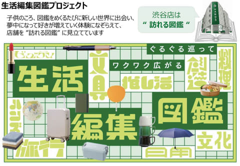 生活編集図鑑プロジェクトの名称については、子どものころ、図鑑をめくるたびに新しい世界に出会い、夢中になって好きが増えていく体験になぞらえて、店舗を“訪れる図鑑”に見立てている。