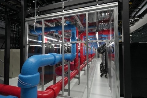 サーバーには、NVIDIAの「GB200 NVL72」などを採用。直接液体冷却方式による高効率な冷却と高性能な計算処理を両立する。