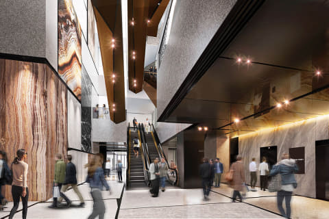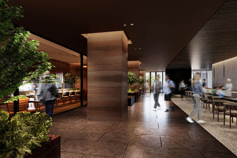 建築デザインは、都市の中での存在感、洗練された空間創造を図り、訪れる人の記憶に残る佇まいを目指して設計。エントランスや吹き抜け空間には独自のアートを取り入れ、日常の中でふと心が動くような体験を演出するとしている。