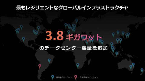 技術への投資では、国内インフラとAI技術の両面を強化。国内のクラウドインフラやAIに関しては、2027年までに約150億ドル(約2兆3,200億円)を投資する計画を進めている。また、東京・大阪リージョンは災害へのレジリエンスも備えている点を説明した。
