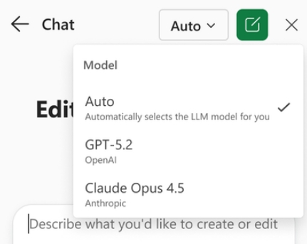 パブリックプレビュー期間中、複数のモデルを選択できる仕組みを導入。OpenAIの「GPT 5.2」とAnthropicの「Claude Opus 4.5」を利用でき、タスクに応じた使い分けが可能。また、Web検索機能を統合し、最新情報の取得にも対応した。