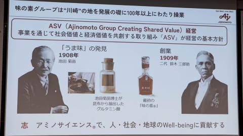 味の素の川崎事業所は、1914年に世界初のうま味調味料「味の素」の本格操業を開始。現在も研究開発およびグループ最大規模の生産拠点として、味の素をはじめ、ほんだし、クックドゥ、クノールカップスープ、アミノバイタルといった製品から、医薬品や石鹸の原料まで、750品目を超える製品を製造している。また、川崎ブレイブサンダースが川崎市とともに推進するSDGsプロジェクト「&ONE(アンドワン)」のオフィシャルパートナーを務める。