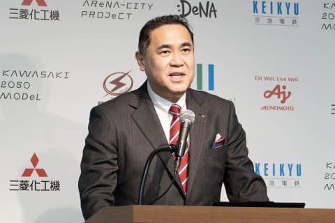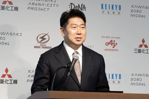 福田市長は、「プロジェクトに、川崎に縁の深い2社がパートナーに加わり、新しいスタートを切れた。川崎市では水素を中心とした脱炭素の取り組みやプラスチックリサイクルなど、様々なチャレンジを進め、大都市の責任としてサステナブルやネイチャーポジティブといったことを世界に発信するという施策を推進してきた。アリーナプロジェクトはこれを体現し、世界の皆さんに見ていただけるようなエリアになるのではないかと思っている」と述べた。