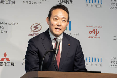 DeNA 代表取締役社長 兼 CEOの岡村信悟氏は、「川崎は新しい企業、イノベーションを生み出す企業が生まれる力を持った場所。その川崎に新しい価値を加え、川崎市や京急、Kawasaki 2050 Modelのパートナー企業とともに、サステナブルな都市として川崎を発展させていきたい」との思いを語った。