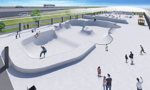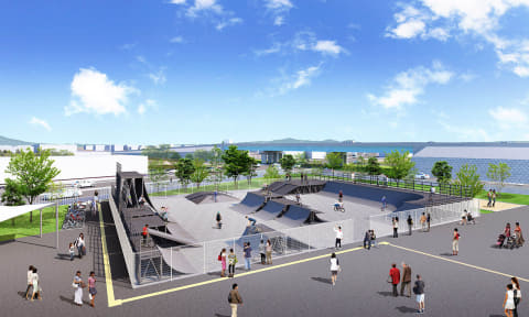 スケートパークは国内外の大会の開催に対応可能な仕様。初心者から上級者まで楽しめるコースを用意する。BMXパークは初心者から中級者を主たる対象としながら、上級者のトレーニング利用も想定している。