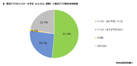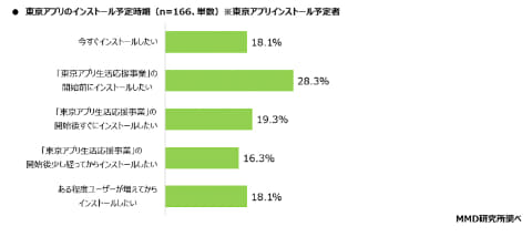 また、東京アプリを現在利用していない人のうち、51.4%が今後インストールを予定しており、その時期は「事業開始前」が28.3%で最も多く、「開始後すぐ」が19.3%だった。
