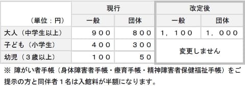 VSE展示開始日の3月19日に、大人(中学生以上)の入館料を改定。現在は一般900円、団体800円だが、それぞれ200円値上げして一般1,100円、団体1,000円となる。子ども、幼児の料金は変更しない。