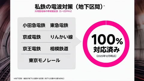 東京メトロと都営地下鉄だけでなく、私鉄の地下区間も同様に対策していくほか、大阪や名古屋の地下鉄も帯域幅を20MHz幅に拡大し、順次対策を進めていく。