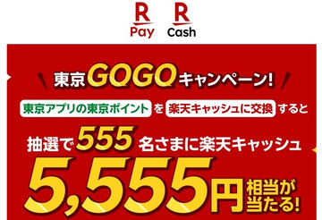 東京ポイントを楽天ペイに交換 抽選で5555円分の楽天キャッシュ進呈