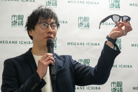 報道関係者向け説明会では、メガネトップ 商品本部 商品開発部 部長 キングスター工場 工場長の吉田和弘氏と、商品開発部 商品開発グループ グループ長の早田直純氏が登壇。Linseの開発背景や、撮影機能に伴うプライバシー対策について説明した。