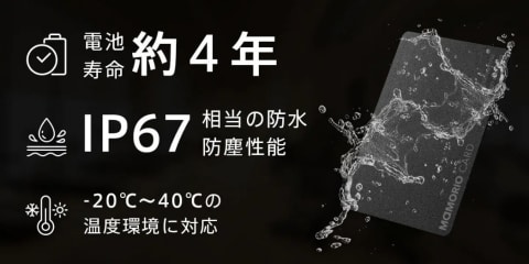 耐久性の高い構造とIP67相当の防水・防塵性能により、雨天や屋外作業中でも使用できる。また-20度~40度の温度環境に対応する。社員証や入館証などのカード類と一体化できるため、ビジネスシーンでのカード管理や紛失防止用途にも適すとしている。