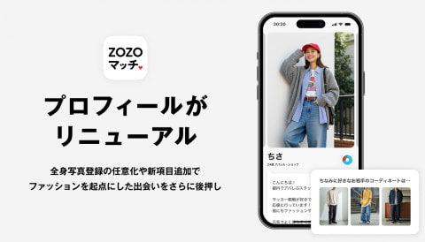 ファッションEC「ZOZOTOWN」を運営するZOZOは、ファッションを軸にしたマッチングアプリ「ZOZOマッチ」のプロフィール仕様をリニューアルした。全身写真の登録が任意となり、写真選択の自由度が向上した。
