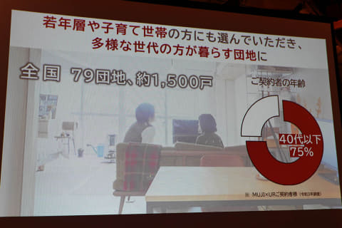 両社は2012年に新たな賃貸リノベーションの形を提案するため、「MUJI×UR 団地リノベーションプロジェクト」を立ち上げ、2013年1月に大阪でリノベーション住戸の供給を開始した。その後、2025年11月末までに累計79団地、供給戸数約1,500戸に達している。団地リノベーションの物件は、若年層や子育て世帯から人気を得ているという。