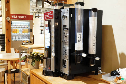 屋外空間エリアでは食べ物や喫煙は禁止だが、飲み物を持ち込んでの休憩は可能。同じフロアに設置されているコーヒーマシンや自動販売機で購入したドリンクを手に、このエリアで一休みするという使い方もできる。