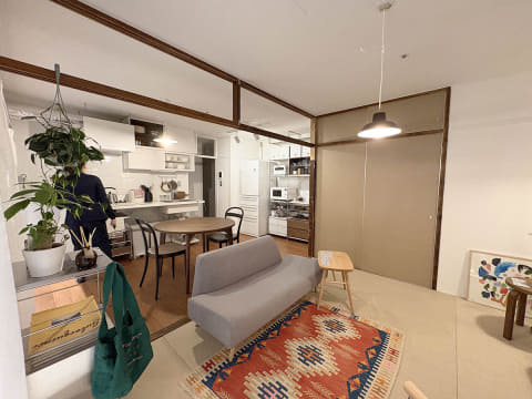 室内空間は、南面に間口が広い3DKの間取りの一部を表現。団地リノベでは元々あった柱や鴨居は活かしつつ、仕切りとなっていたふすまなどをなくして開放的な空間にする形で実施しており、モデルルームでもそれを再現している。