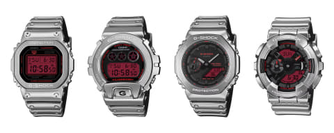 G-SHOCK、シルバーメタリック+赤い液晶の定番4機種