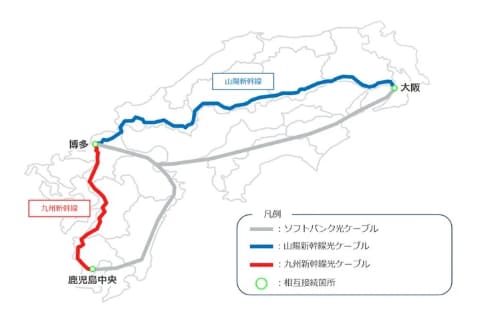 新サービスは、ソフトバンクのWDM(波長分割多重)ネットワークと、JR西日本光ネットワークおよびJR九州電気システムが保有・運用するWDMネットワークを相互接続して提供する、低遅延・高信頼のイーサネット専用線。