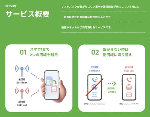 副回線サービスは、2022年7月に発生したKDDIの大規模通信障害を契機に、KDDIとソフトバンクが協力して開発したもの。大規模な通信障害や災害発生時などで回線がつながりにくいといった非常時の利用を念頭にしたもので、ユーザーが簡単な手続きでソフトバンク/KDDIの回線へ切り替えて、通信の利用を継続できる。