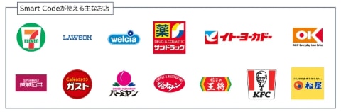 MyJCB Payは、Smart Code(スマートコード)マークのある全国160万カ所以上で利用可能。コンビニエンスストアやドラッグストア、スーパーマーケット、飲食店など幅広い業種に対応する。支払い時に「スマートコードで」と伝え、アプリ画面を提示することで決済できる。