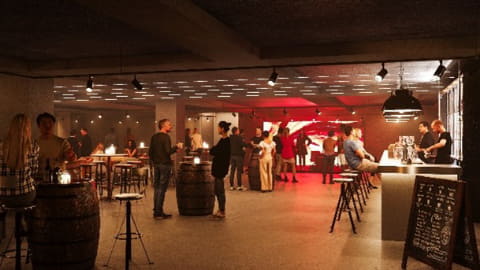 「聴く、食べる、語る、出会う、創る」がすべて揃うライブハウスとし、開放的なホワイエ空間では、オリジナルの飲食を提供する。