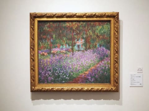 ジヴェルニーと言えば、モネが1883年から1926年に亡くなるまで過ごした場所でありモティーフ。代表作というか、代表的な連作である「睡蓮」などを描いた池があるのもここだ。よく「日本が好きだったモネは、日本風の庭を作った」といった話を聞くが、眼の前に広がる《ジヴェルニーのモネの庭》は、西洋風だ。アヤメのような紫色の花がたくさん咲いているが、これがアイリス(アヤメ)なのかは、筆者には分からない。