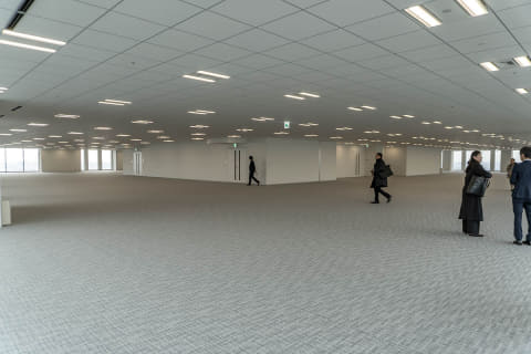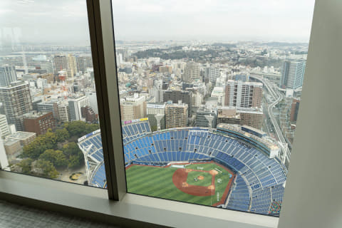 報道向けに公開されたのは、タワーのオフィスフロア。11階のスカイロビーで説明を行なった後、31階に上がった。11階、31階ともに、眼下に横浜スタジアムを望むことができた。