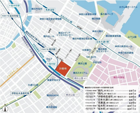 所在地は神奈川県横浜市中区港町1丁目1番1。JR関内駅の駅前で、横浜スタジアムに隣接する。敷地面積は約16,500m2、延床面積は約128,500m2。