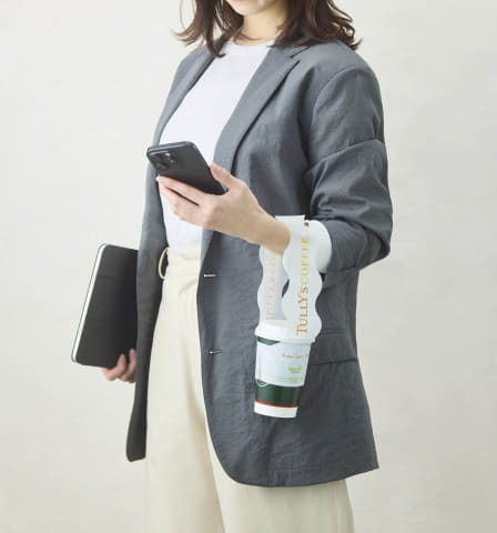 テイクアウト時にハンズフリーの状態を実現する。購入後の移動や空港など荷物の多い場面でも、快適にドリンクを携行できるとしている。