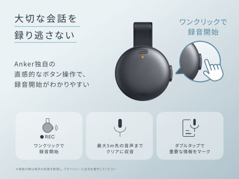 アンカー初のAIレコーダー「Soundcore Work」 約10gで文字起こし・要約対応