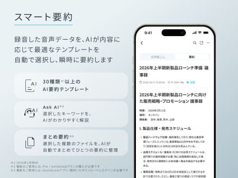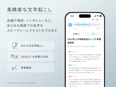 録音データはスマートフォンだけでなくPCでも確認・編集でき、Unlimitedプランでは無制限の文字起こしや複数データをまとめて要約できる。セキュリティ面では、欧州の「EN 18031」や米国の「NIST IR 8425」に準拠し、プライバシー保護機能により機密性の高い会議や商談でも安心して利用できるという。